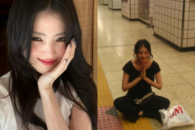 열애설 관련 논란 후 본업에 복귀한 배우 한소희가 지하철역에서 명상하는 근황을 공개했다.