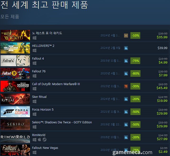 그 외에는 신규 번들 출시를 예고한 콜 오브 듀티: 모던 워페어 3 (2023)이 5위를 차지했으며, 약 2년 간의 앞서 해보기를 끝내고 정식 출시한 스커 리추얼이 6위에 올랐다.