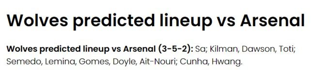 경기를 앞두고 영국 '90min'은 울버햄튼의 선발 라인업을 예측했다. 매체는 울버햄튼이 3-5-2 포메이션을 가동하고, 투톱 중 한 자리를 황희찬이 차지할 것으로 내다보았다.
