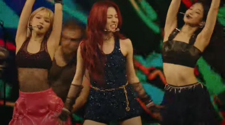 르세라핌이 21일 코첼라 무대에 두 번 째로 올라 히트곡 ‘Smart’를 부르고 있다. Coachella 유튜브 채널 라이브 갈무리