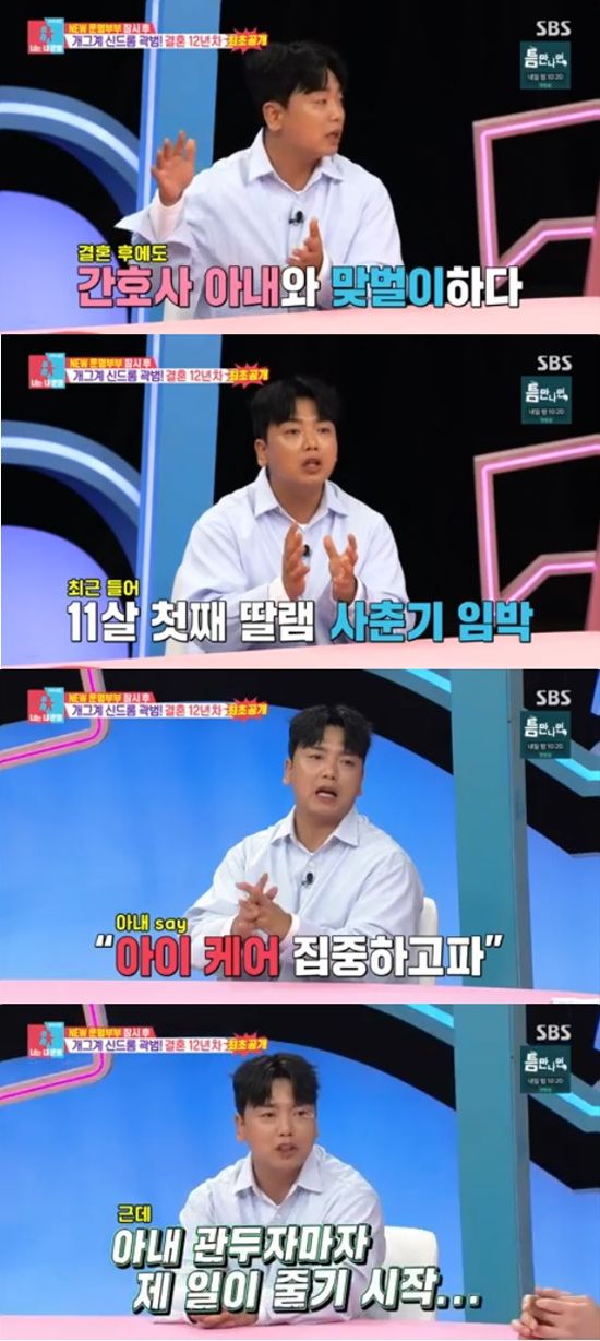 곽범은 아내와 맞벌이를 해 왔지만 첫째가 사춘기에 임박하면서 아내가 퇴사한 것이라고 털어놨다. 아내가 아이 케어에 집중하고 싶다고 해서 일을 관두고 쉬라고 한 것이라고.