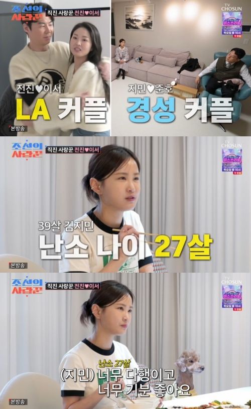 지난 22일 오후 방송된 TV조선 ‘조선의 사랑꾼’에서는 김지민이 전진과 류이서 부부의 집을 방문했다.