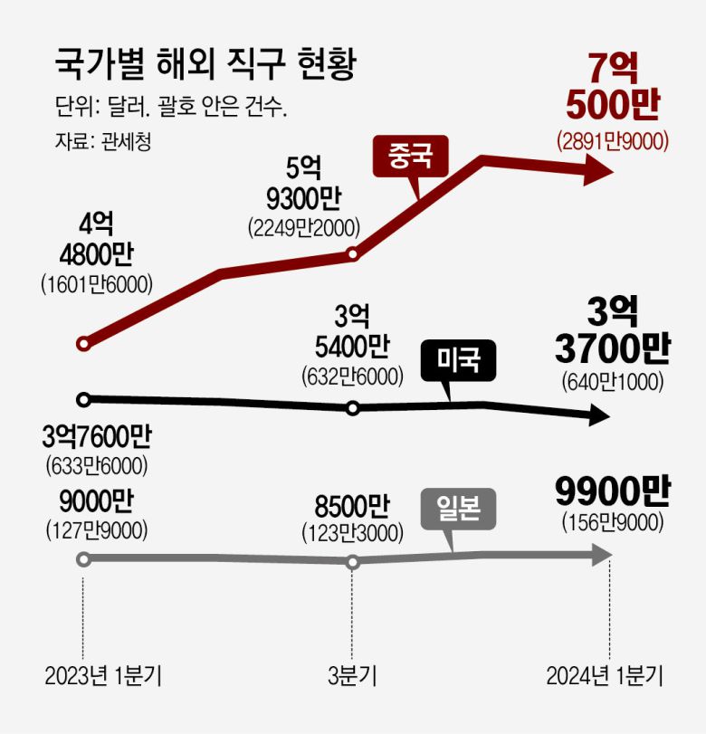1분기 美직구 10% 줄어 3.3억달러… 中직구는 금액 57%-건수 80% 급증