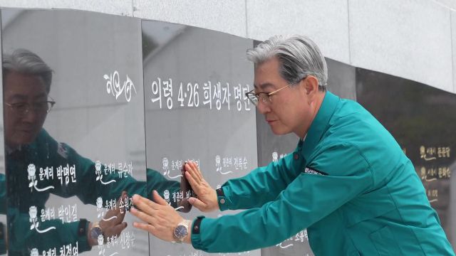 ▲오태완 의령군수가 의령4·26추모공원 위령탑을 살펴보고 있다.ⓒ의령군