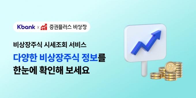 케이뱅크가 두나무가 운영하는 비상장주식 거래 플랫폼인 '증권플러스 비상장'과 제휴해 '비상장주식 시세조회' 서비스를 출시했다고 24일 밝혔다. 은행권에서 비상장주식 관련 서비스를 제공하는 것은 케이뱅크가 처음이다.