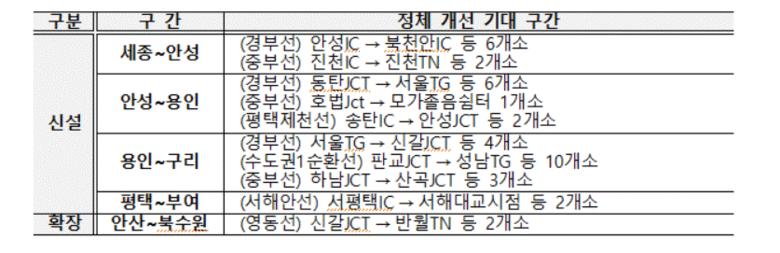 올 상반기 중 국토부, 지자체, 도로공사 등이 참여하는 협의체를 구성해 교통정체가 발생하는 8개 IC에 대해 접속부 확장 등 개선 방안을 연내 마련할 예정이다.