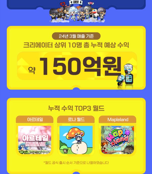이 회사는 플랫폼과 크리에이터가 함께 성장한 지난 시범 서비스 기간의 기록을 담은 인포그래픽을 공개했다. 전년도에 비해 '메이플스토리 월드'의 월간 최대 동시 접속자 수는 약 134배, 접속 유저수는 24배 증가했으며 클라이언트 실행 횟수도 약 430배 늘었다.