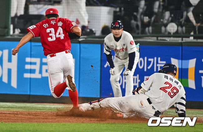 롯데 자이언츠 레이예스가 6회말 2사 투수 옆 내야 안타를 치고 1루에서 SSG 랜더스 한두솔에 앞서 베이스를 밟고 있다. 2024.04.24 / foto0307@osen.co.kr