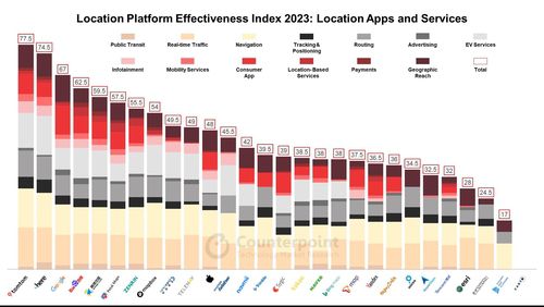 카운터포인트리서치가 조사한 작년 위치 정보 플랫폼 효율성 지수 순위[카운터포인트리서치 보고서 갈무리]