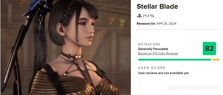 스텔라 블레이드 국내외 매체 평가는 24일 밤 11시부터 게재됐으며, 25일 11시 기준 메타크리틱에서 총 110개 매체가 참여해 82점을 기록 중이다. 참여 매체 수가 상당해 화제성을 짐작할 수 있으며, 개발사 시프트업의 첫 콘솔 타이틀이라는 점을 감안한다면 우수한 평가를 기록한 셈이다.