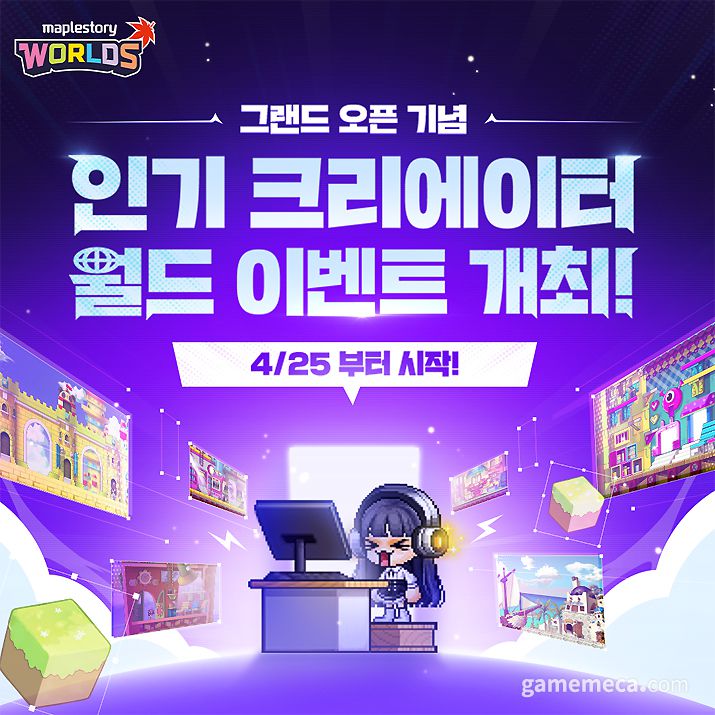 넥슨은 메이플스토리 월드 정식 서비스를 기념해 플랫폼에 등록된 크리에이터 월드 10여개에서 다양한 이벤트를 한다. 먼저 메이플랜드는 5월 30일까지 경험치 쿠폰과 각종 원석 및 주문서를 지급하며, 신규 이용자를 대상으로 치장 아이템과 펫을 선물한다.