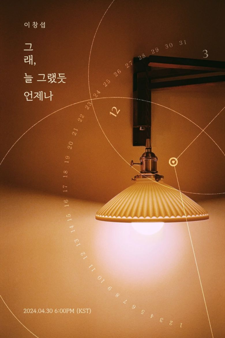 오늘(25일) 오후 이창섭 공식 SNS를 통해 ‘그래, 늘 그랬듯 언제나’ 발매 소식을 알리는 티저 이미지가 공개됐다. 공개된 이미지에는 빈티지한 무드의 전등과 필름 카메라 감성이 따뜻한 분위기를 연출했다.