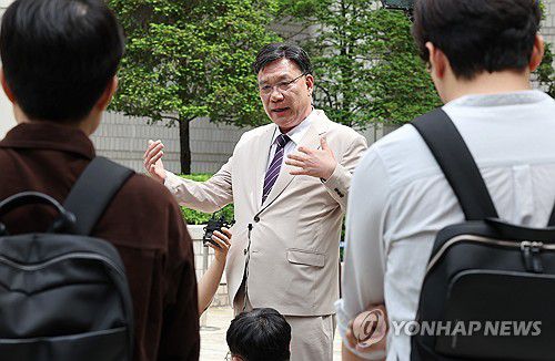 (서울=연합뉴스) 김주형 기자 = 의대생들을 대리하는 법무법인 찬종 이병철 변호사가 26일 서울 서초구 서울중앙지방법원에서 열린 의대생들이 대학 총장을 상대로 제기한 대입전형 시행계획 변경 금지 가처분 소송의 첫 심문을 마친 뒤 취재진에게 입장을 설명하고 있다. 2024.4.26