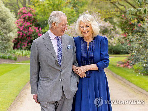 버킹엄궁은 26일 찰스 3세 국왕과 커밀라 왕비의 19번째 결혼기념일 사진을 공개했다. 이 사진은 결혼기념일 다음날인 4월 10일 런던 버킹엄궁 정원에서 촬영된 것이다. [버킹엄궁 제공]
