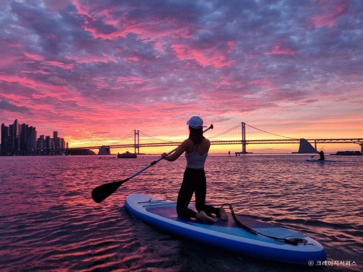 밤이면 화려해지는 광안대교도 패들보드 위에서 느긋하게 감상할 수 있다. 모래사장과 바다에서 진행하는 SUP 요가에 도전해도 좋다. 광안리 SUP존에는 샤워장과 파라솔, 포토존 등 시설이 잘 갖춰져 있다. SUP 프로그램을 체계적으로 운영하는 상점들도 해변 근처에 모여 있어 편리하게 이용할 수 있다. 체험 비용은 강습과 장비 대여 등을 포함해 3만5000원~5만원(2~3시간)이다.
