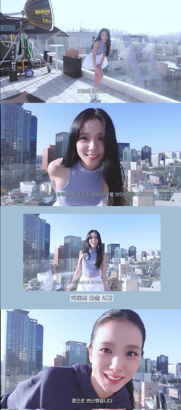 이어 지수는 "남산 타워 바로 앞에서 촬영합니다"라며 들뜬 마음으로 촬영에 임했다. 지수는 "아 이거 서울 브이로그네"라며 팬들이 서울 브이로그를 찍어달라고 요청해왔다고 스태프들에게 설명했다.