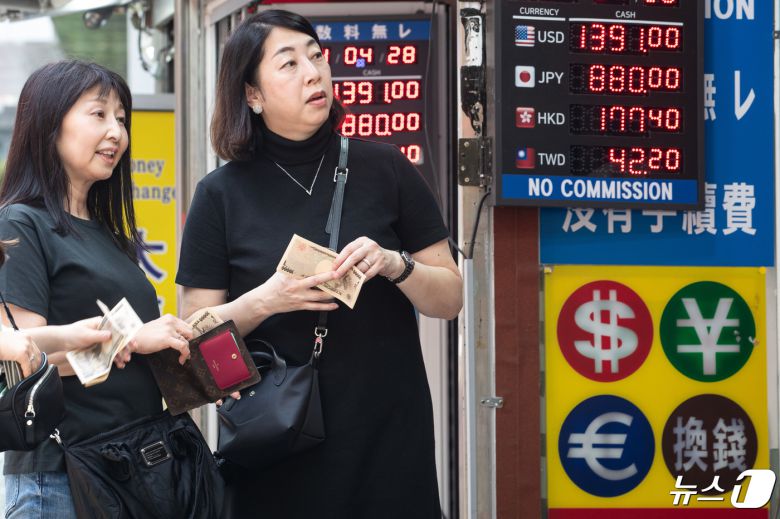 (서울=뉴스1) 유승관 기자 = 달러 당 엔화 환율이 158엔을 돌파하며 34년래 최저치를 기록한 가운데 28일 서울시내 환전소에서 일본인 관광객들이 엔화 환전을 위해 기다리고 있다. 2024.4.28/뉴스1