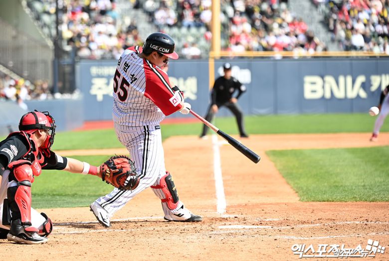 김범석은 주말 3연전 두 번째 경기 팀이 2-3으로 끌려가던 4회말 1사 1루에서 상대 선발 황동하의 포심 패스트볼에 벼락같은 스윙을 휘둘렀다. 좌측 담장을 넘어가는 2점 홈런(시즌 2호)을 터트려 분위기 반전을 이끌었다. 팀은 김범석의 홈런으로 4-3 리드를 잡았고, 경기 후반 추가점을 올려 6-3으로 승리했다.