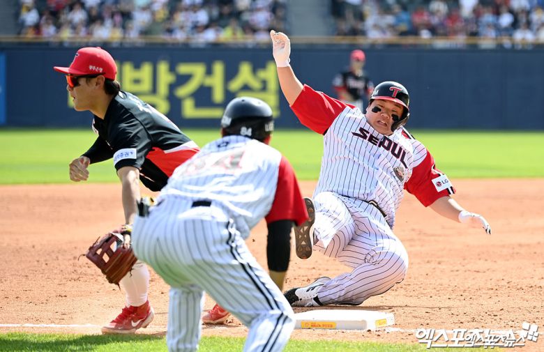 경기 중반까지 침묵했던 김도영의 방망이. 7회초 센스 있는 플레이로 내야 안타를 만들었다. 팀이 5-7로 뒤처진 7회초 무사 1,2루. 김도영은 박명근을 상대로 기습 번트를 시도했다. 최근 쾌조의 타격감을 선보였던 김도영이었기에 LG 야수진은 번트를 준비하지 못한 듯 허를 찔렸다. 포수 박동원이 빠르게 잡아 3루로 던져봤지만, 공은 3루수 문보경이 잡을 수 없는 곳으로 날아갔다. 좌익수 김현수가 잡아 내야로 중계 플레이에 나섰지만, 이미 2루주자는 3루를 돌아 홈으로 돌아온 상황. 6-7과 함께 무사 2,3루가 됐다. 이후 8-7 역전에 성공한 KIA. 8~9회초 각각 한 점씩을 더 추가해 LG의 추격 의지를 꺾으며 10-7로 승리했다.