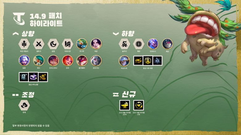 이하 전략적 팀 전투, 롤토체스 14.9 패치 노트