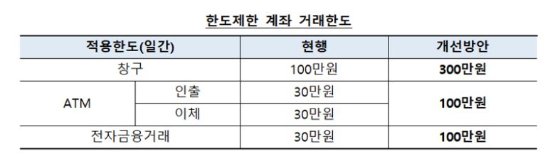 이에 따라 금융위는 금융감독원 및 은행권과 공동으로 한도제한 계좌 개선방안을 마련했다.