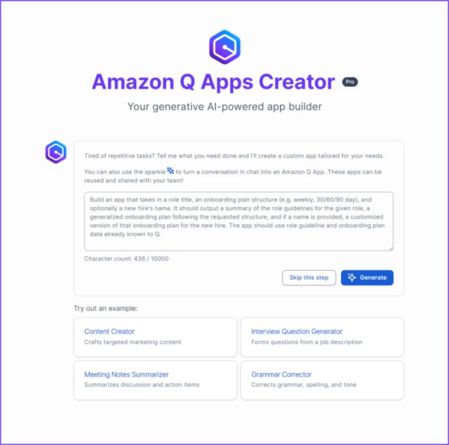 기본 코드나 프로그래밍을 이해할 필요가 없다. 아마존 큐 앱의 AI 어시스턴트가 모든 중요한 작업과 빌딩 작업을 수행한다. 예를 들어 사용자가 자연어 프롬프트를 입력하면, 문서의 문법 편집기와 맞춤법 검사기를 만들고 회사 스타일 지침을 사용할 수 있다. 이후 AI 어시스턴트가 업로드를 수행하고 애플리케이션을 생성한다.