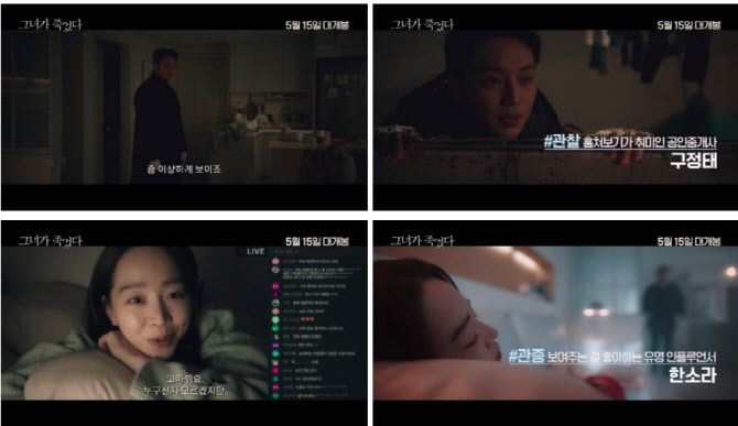 캐릭터 포스터 및 예고편을 공개하며 강렬한 호기심을 자극하는 미스터리 추적 스릴러 ‘그녀가 죽었다’는 오는 5월 15일 극장 개봉 예정이다.