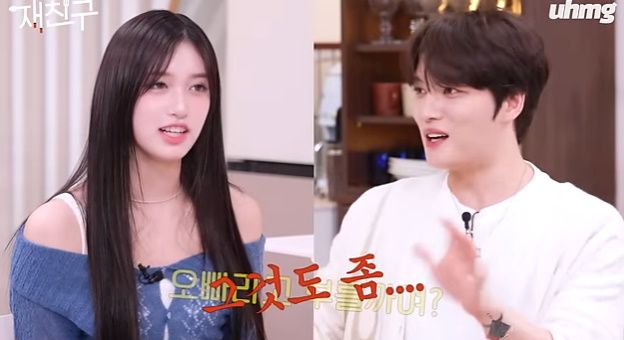 이날 '재친구'에는 아이브 가을, 이서가 게스트로 출연했다. 김재중은 이야기를 나누던 중 이서에게 "말투가 원래 이렇게 애기애기하냐"고 물었다.