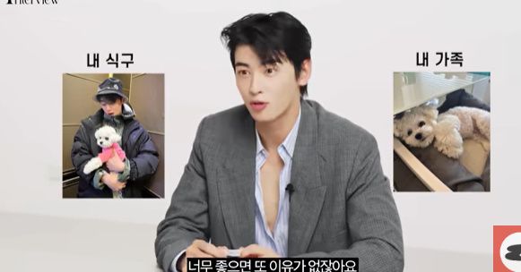 특히 차은우는 반려견 동동이 자랑도 이어갔다. 언제가 가장 예쁜지 묻자 차은우는 "가족이라면 좋아하는 데 이유가 없다, 너무 예쁘고 사랑스럽다"며 "촬영 중이거나 해외에 있으면 너무 보고싶다 지금도 보고싶다"꼬 했고, 이에 누리꾼들은 "반려견 내가 되고 싶다", "나도 차은우 매일 보고싶다", "대리 설렘 이렇게 느끼네요"라며 다양하게 반응했다.