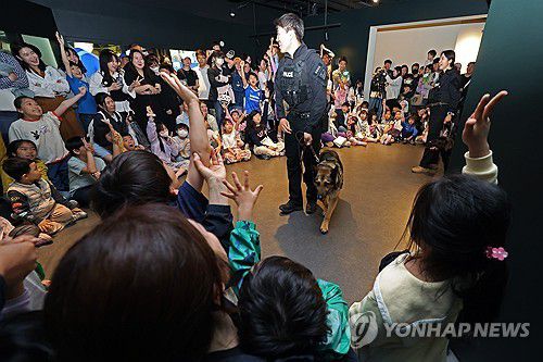경찰 제복과 수갑, 삼단봉 등을 착용해볼 수 있는 체험 부스에도 아이들로 가득했다. 경찰특공대 탐지견이 마약 탐지 시범을 보일 때는 작은 탄성이 새어 나오기도 했다.