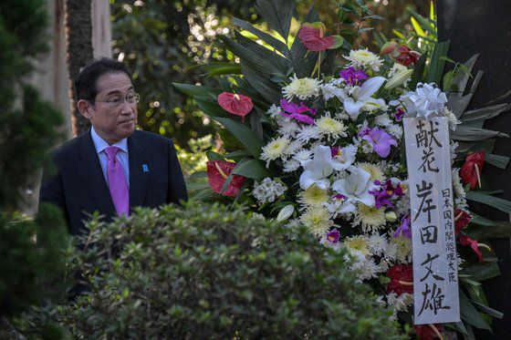 기시다 후미오 일본 총리가 브라질 상파울루에서 4일(현지시각) 기자회견을 열고 있다.. 로이터=연합뉴스