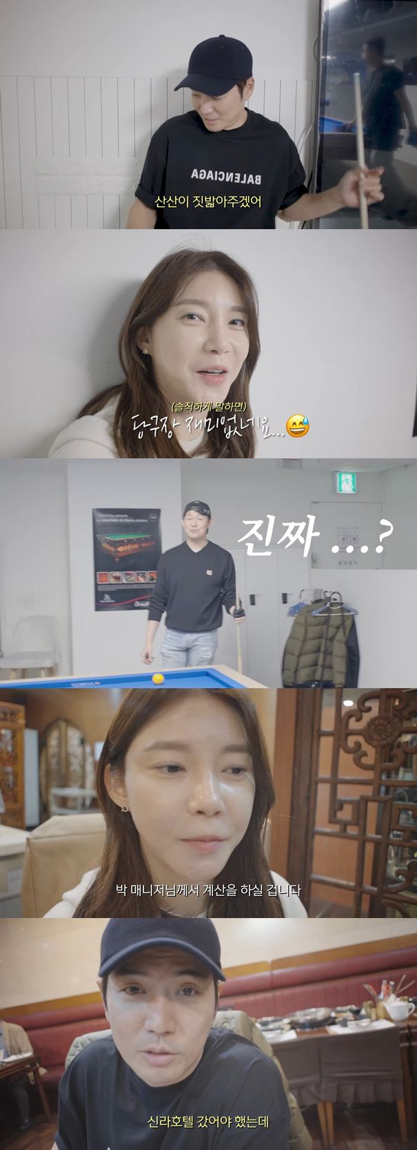 차예련은 "훠궈집에 왔다. 오늘 두 분이서 당구 내기를 하셔가지고 박 매니저님께서 계산을 하실 거다"라고 말했다.