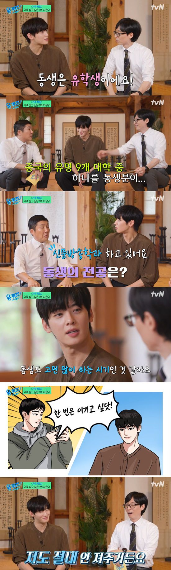 또한 차은우는 "동생이 '한번은 형을 이기고 싶다'고 하더라. 그런데 저도 절대 안 져준다"고 답해 비현실적인 형제의 현실적인 대화를 공개해 눈길을 끌었다.