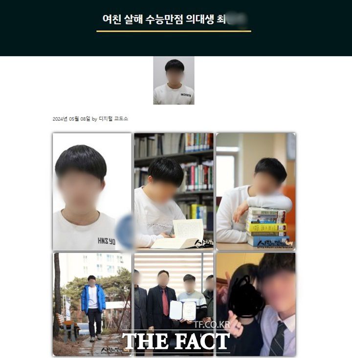 심지어 디지털교도소까지 4년 만에 다시 등장, 최 씨의 신상을 공개했다. '여친 살해 수능 만점 의대생 최○○'이라는 제목으로 올라온 글에는 최 씨의 사진과 개인정보가 상세히 적혀있다. 댓글에는 "최 씨 부모의 사진을 공유한다"며 링크를 올리는 네티즌도 있었다. 지난 2020년 처음 등장한 디지털교도소는 범죄 여부가 확정되지 않은 피의자 신상까지 공개했다가 '사적제재' 논란으로 같은 해 폐쇄됐다.
