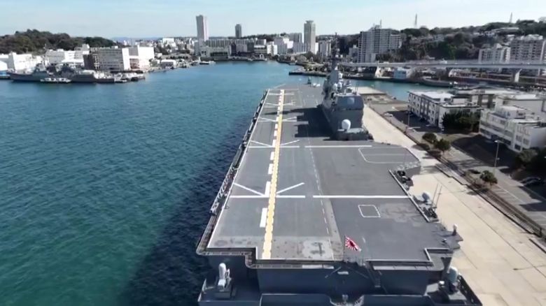 일본 요코스카 기지에 정박한 해상자위대 호위함 '이즈모'의 모습이 보입니다.