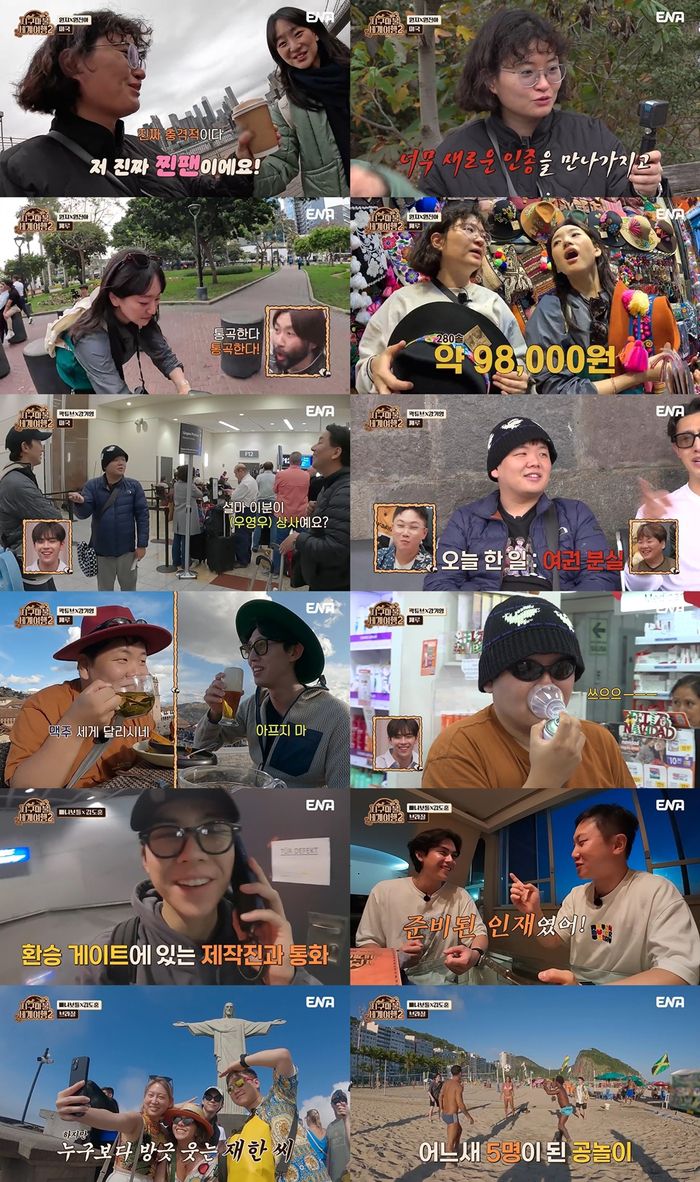 11일 방송된 ENA ‘지구마불 세계여행2’(이하 ‘지구마불2’) 10회에서는 브라질에 간 빠니보틀과 ‘여행초보’ 김도훈, 페루에 간 원지와 ‘파워 J’ 원진아 그리고 곽튜브와 ‘현지인’ 강기영의 4라운드 여행이 그려졌다. 스튜디오에는 새 여행 파트너 세 사람이 출연해 서로의 콘텐츠를 지켜보며 비하인드 토크를 나눴다.