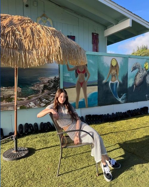 그녀가 선택한 장소는 마치 외국의 휴양지 같은 분위기를 풍기며, 일상에서 벗어나 휴식을 취하는 이상적인 공간으로 보인다.