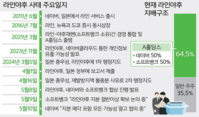 네이버와 소프트뱅크는 라인야후 최대 주주인 A홀딩스 주식을 절반씩 보유하고 있다. 네이버가 라인야후의 위탁업체인 동시에 대주주인 만큼 보안에 문제가 생길 수 있다는 게 일본 측의 입장이었다.