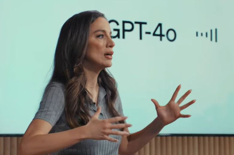 오픈AI의 최고기술책임자(CTO)인 미라 무라티가 13일(현지 시간) 실시간 생방송을 통해 새로운 음성비서 ‘GPT-4o’의 주요 기능을 소개하고 있다. 사진 출처 오픈AI 유튜브