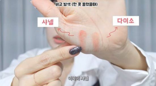 다이소 컬러 밤과 샤넬 제품을 비교하는 유튜브 채널 '뷰티 메시지 프롬 제인'의 콘텐트. [사진=유튜브 캡쳐] |