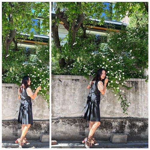 사진들은 짙은 녹색의 나뭇잎과 흰색 꽃이 만발한 나무 아래에서 이효리가 단정한 옷차림을 하고 있는 모습을 담고 있다. 사진=이효리 SNS |