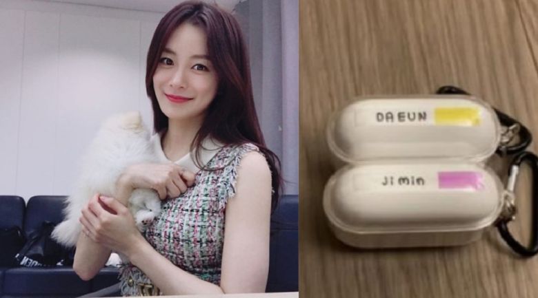 특히 송다은은 방탄소년단의 굿즈 티셔츠를 입은 사진과 'DA EUN' 'ji min'이라고 적힌 커플 이어폰의 사진을 게재해 이목을 집중시켰다.