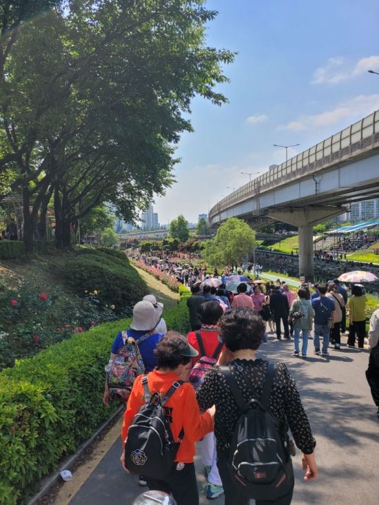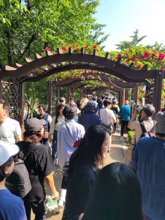 중랑구, 18~ 25일 8일 동안 중랑장미정원 일원에서 ‘서울에서 가장 예쁜 축제’인 ‘2024 중랑 서울장미축제’ 개최...첫날인 18일부터 인파 북적 '꽃인지 사람인지 구분 안될 정도'