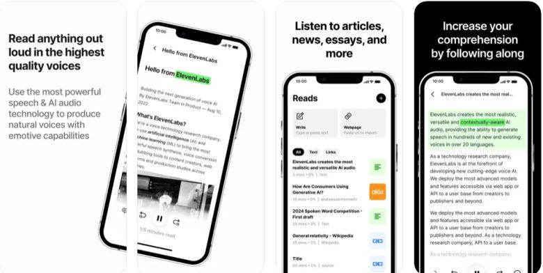 전날 공개한 '일레븐랩스 리더'는 모바일에서 웹 페이지나 문서 등을 소리내 읽어주는 기능이다. 즉 휴대폰을 통해 접근성응 강화한 것이다. 현재는 iOS로만 출시됐다,