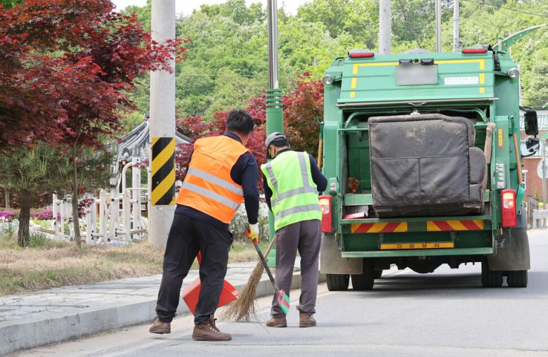 경북 봉화군 청소노동자들이 봉화읍에서 청소작업을 하고 있다. 백소아 기자 thanks@hani.co.kr