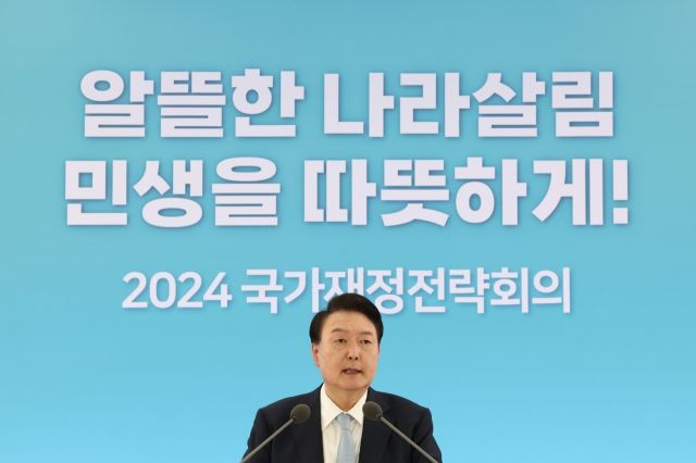 윤석열 대통령이 지난 17일 세종특별자치시 정부세종청사에서 열린 2024년 국가재정전략회의에서 모두발언을 하고 있다. [연합]
