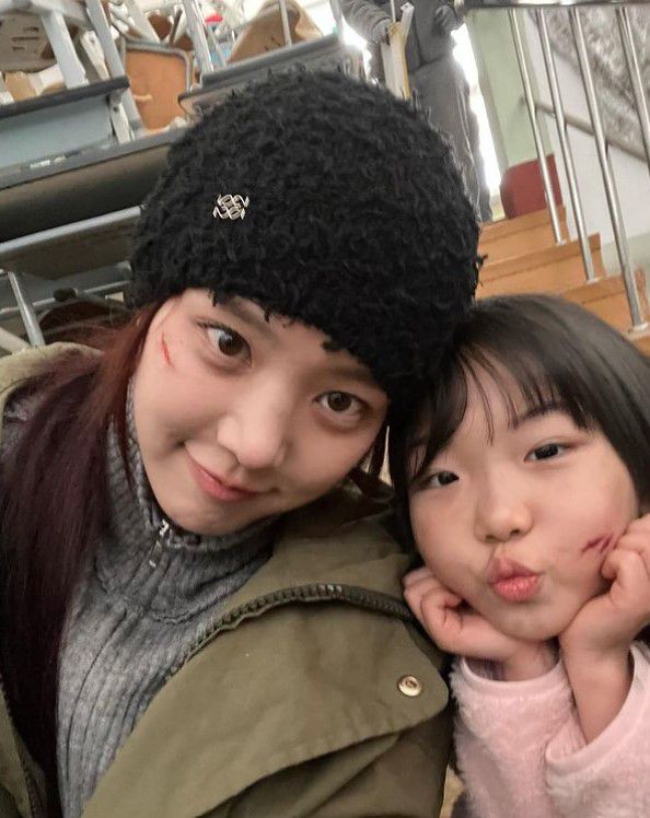 공개된 사진 속에는 이유비가 심지유와 포즈를 취하며 카메라를 응시하고 있다.
