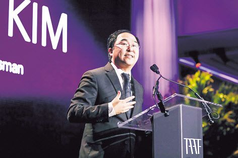 한국계 첫 미국 연방 상원의원에 도전하는 앤디 김 하원의원이 새 리더십으로 젊은층에 다가가겠다는 포부를 밝혔다. 사진은 이달 초 뉴욕의 한 행사에서 연설하는 앤디 김의 모습 |