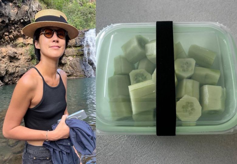 사진에는 오이로 채워진 도시락통이 봉인다. 점심 한 끼 식사라고 하기에는 적은 양. 앞서 키 180cm, 체중 51kg라고 밝혔던 홍진경. 늘씬한 몸매를 유지할 수 있는 비결을 엿볼 수 있다.