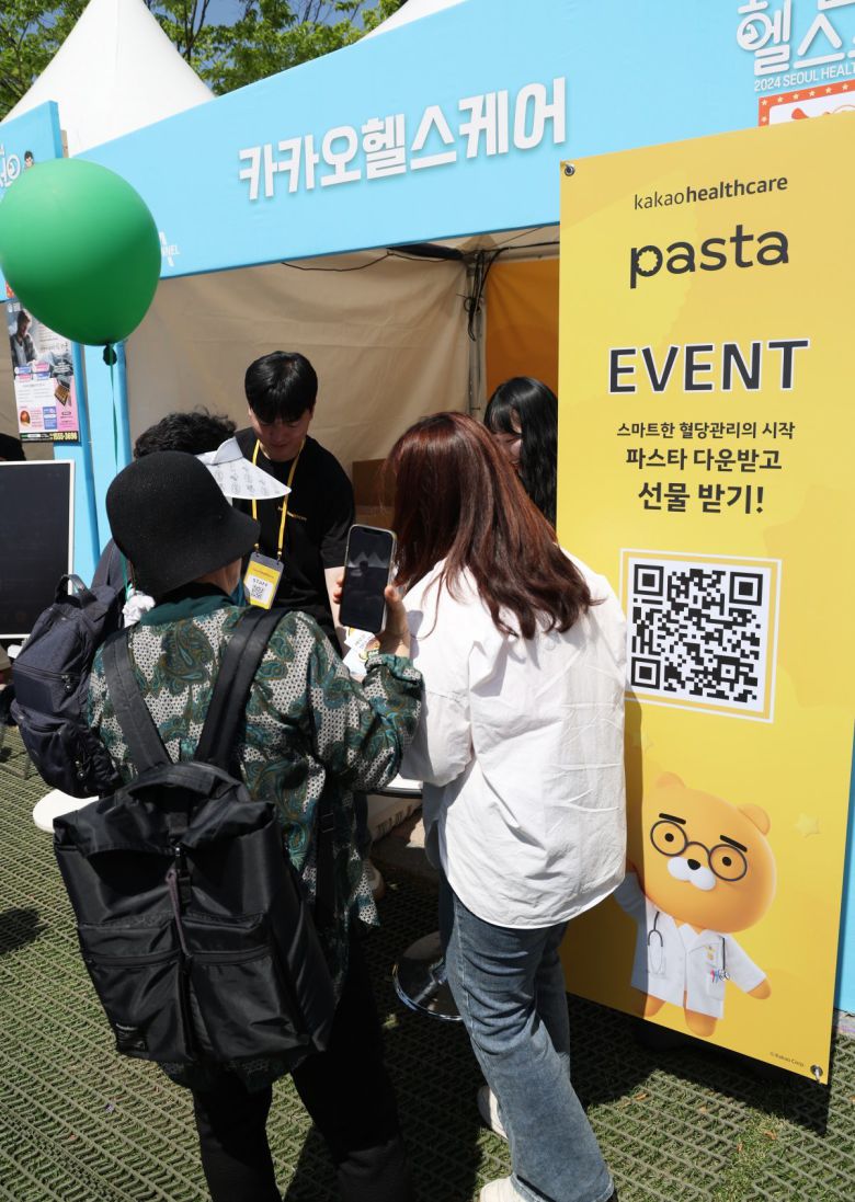 14일 서울 중구 서울시청 앞 서울광장에서 열린 2024 서울 헬스쇼 에서 시민들이 카카오 헬스케어 부스를 둘러보고 있다. 젠톡 부스. |